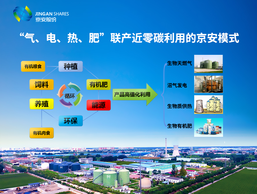 1、农业有机废弃物生产沼气、沼气发电,沼气提纯生物天然气、生物质直燃发电,城市和工业园区集中供热、供气,沼渣沼液及草木灰生产有机肥等产业,对区域内畜禽粪污、废弃秸秆等农牧业废弃物进行综合利用,形成了完整的“气、电、热、肥”联产低碳循环的“京安模式”。做到资源多级利用,物质良性循环,打造了可持续发展的循环农业生态系统。公司结合项目建设,承担农业农村部与联合国开发计划署的“中国零碳村镇促进项目”。