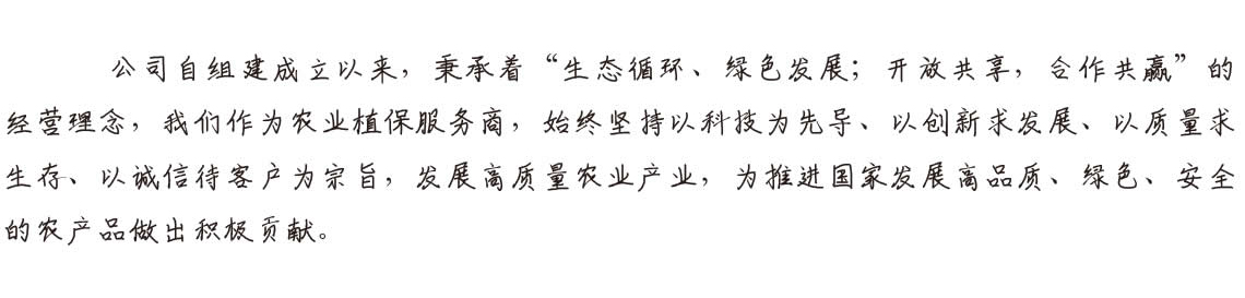 以国家产业政策为导向,京安肥业公司加大投资力度,开拓新市场,成立了控股子公司河北京安生态科技有限公司。业务涉及开发及兼并畜禽粪污资源化利用项目,功能性肥料的研发与销售,公司为广大农户、农业基地提供病虫害防治、农膜回收、农业技术开发、农业技术服务、技术咨询、基于物联网和大数据的智慧农业建设等一揽子解决方案。以省会石家庄为中心,面向华北,发展特色农业种植和高质量农业产业,打造新生态循环,立志成为农业植保综合解决方案的一流企业,为推进国家发展高品质、绿色、安全的农产品做出积极贡献。